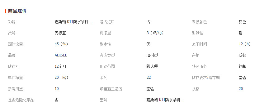 產(chǎn)品: 瀏覽次數(shù):667嘉斯頓K11柔韌型防水涂料衛(wèi)生間廚房通用補(bǔ)漏砂漿膠漿外墻20kg