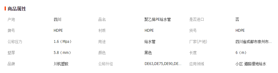 本產(chǎn)品執(zhí)行標準為GB/T 13663.2-2018《給水用聚乙烯(PE)管道系統(tǒng) 第2部分:管材》