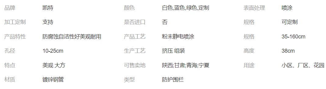 產(chǎn)品介紹:廠區(qū)圍墻圍欄是采用鋅合金材料制作的用于不同部位、具備不同功能性的圍護(hù)欄桿,由于其后期是用靜電噴涂處理表面層,使具有高強(qiáng)度、高硬度、外觀精美、色澤鮮艷等優(yōu)點(diǎn),成為住宅小區(qū)、工廠院校、道路交通等使用的主流產(chǎn)品。傳統(tǒng)的護(hù)欄使用鐵條材料,需要借助電焊等工藝技術(shù),而且質(zhì)地較軟、容易生銹、色彩單一。鋅鋼陽(yáng)臺(tái)護(hù)欄完美地解決了傳統(tǒng)護(hù)欄的缺點(diǎn),而且價(jià)格適中,成為傳統(tǒng)各式護(hù)欄材料的替代產(chǎn)品。鋅鋼護(hù)欄采用無(wú)焊穿插組合方式進(jìn)行拼裝(也有工藝需要局部焊接,但要在噴涂前做補(bǔ)鋅處理),基材厚度是不銹鋼的2-3倍,500多種顏色可供選擇,表面采用聚酯抗氧化粉末靜電噴涂,增強(qiáng)了護(hù)欄的抗氧化抗紫外線、耐候耐腐能力。以鋅鋼為基材,用在建筑護(hù)欄中的產(chǎn)品具體的主要有:陽(yáng)臺(tái)護(hù)欄、防護(hù)窗、樓梯扶手、柵欄、花園圍欄、百葉窗、空調(diào)圍欄、道路護(hù)欄。工業(yè)用圍欄(如廠區(qū)圍欄、商業(yè)場(chǎng)地圍欄)、農(nóng)業(yè)用圍欄(如田地圍欄,畜牧圍欄)、民用圍欄(如建筑物頂圍欄,圍欄墻等)、公共設(shè)施圍欄(如道路隔離欄)等等。 使用比較廣泛。產(chǎn)品實(shí)拍展示: